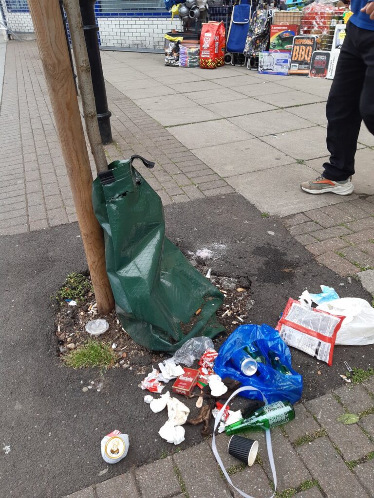 I tried to engage with one or two street cleaners and spoke to Muhammad Aziz, pictured. It’s quite easy to lift the tree jackets to expose the litter. In August I was able to speak to two Council staff with responsibility for Church Street market and I expressed my concerns.